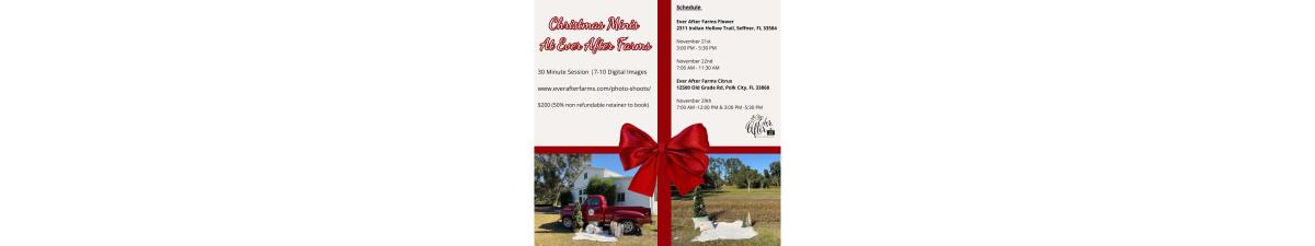 It's the most magical time of the year to capture new family memories! Join us for festive Christmas Mini Sessions with our on-site Ever After Photography team--complete with charming holiday setups at our Flower and Citrus farms. *30-minute session | 7-10 digital images* Please follow the link above to schedule your session!